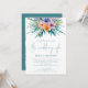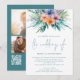 Tropical Florals Florals 3 Photos QR Teal Wedding Invitation
