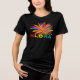 Aloha is written in fun red, orange, yellow, green, blue rainbow colours. A large bright flower with burst of colourful petals including blue, green, yellow, purple, orange, brown give an island vacation vibe. Original Artwork by TamiraZDesigns.