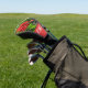 Personalise your initials on this golf head cover featuring a beautiful large tropical flower. Green foliage surrounds the pink flower with your initials appearing in white font at the bottom of the golf cover. Quickly and easily personalise.