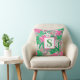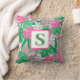 Tropical Flower Monogram Pink White Green Preppy Cushion