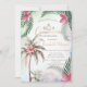 Tropical flowers with palm leaves. This invitation is easily customised for your event by simply adding your details.