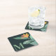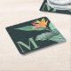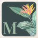 Tropical Flowering Plant on Dark Teal Monogrammed Square Paper Coaster
