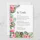 Complete the tropical paradise aesthetic of your wedding ensemble with our Tropical Flowers and Flamingo Wedding Details Card. This beautifully crafted card features a vibrant design with hand-painted watercolor tropical flowers, including palm leaves, monstera, hibiscus, and Hawaiian lilies, accompanied by two graceful flamingos. The elegant font adds a touch of sophistication to convey all the essential wedding details to your guests, ensuring they are fully informed and excited for your special day. Perfect for couples seeking to infuse their wedding with exotic charm and romantic allure.