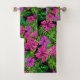 Tropical flowers and plants on black bath towel set