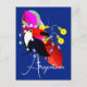 This colourful design features tropical plants, flowers, and a colourful toucan.
