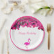 Tropical flowers and flamingo Birthday Paper Plate.