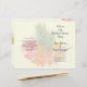Tropical flowers on off-white wedding program. Customise four pages with your wording using modern font templates. Pineapples, hibiscus, plumeria and bird-of-paradise flowers decorate this unique and beautiful custom program for a beach-themed or Hawaiian wedding ceremony. Include a personal message to guests, which will appear on the last page (back) of the program, once folded. The customer will fold the programs after purchase.