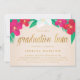 Beautiful pink, red and white tropical flowers pair with gold text in these tropical floral graduation luau invitations.