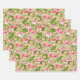 Three sheets of wrapping paper feature tropical pink and coral hibiscus flowers on a light gold background (or any colour you choose.) MORE colours in our store.