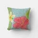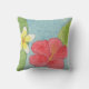 Hibiscus and plumeria flowers on this throw pillow.