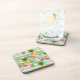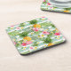 Tropical Flowers & Pineapple On Teal Stripes Coaster