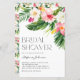 Invite guests to your event with this customisable bridal shower stationery invitation. It features watercolour illustrations of palm leaves, banana leaves, hibiscus, plumeria and other tropical plants. Personalise this tropical bridal shower invitation by adding name, time, date and other event details. This greenery bridal shower invitation is perfect for summer bridal showers.