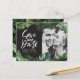 Tropical foliage and hand lettering monochrome photograph wedding save the date postcard. Part of a wedding suite.
