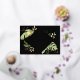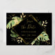 This modern tropical "save the date" features green and gold exotic foliage on a black background. An elegant geometric foil gold frame highlights the gold foil text. Gold splatters accentuate the elegant botanical design and brings a bit of sophisticated whimsy to the invite. This island oasis design is perfect for any outdoor, beach or destination wedding.