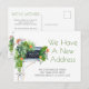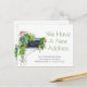 Announce you've moved and/or have a new address with this moving announcement postcard featuring a watercolor mailbox decorated with watercolor tropical foliage, flowers and greenery with your new house number on the mailbox. All text is editable to customise as desired. ASSISTANCE: For help with design modification or personalisation, colour change, resizing, transferring the design to another product or if you would like coordinating items, contact the designer BEFORE ORDERING via the Zazzle Chat MESSAGE tab below or email makeitaboutyoustore@gmail.com.