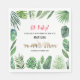 Tropical foliage and gold effect animals baby shower party napkins. Hand painted watercolor foliage, script text and gold animals make this a fun, modern baby shower theme.