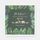 Tropical foliage and gold effect animals baby shower party napkins. Hand painted watercolor foliage, script text and gold animals make this a fun, modern baby shower theme.