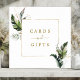 This wedding cards & gifts sign features watercolor green tropical foliage, palm tree leaves, banana leaves with a gold rectangle frame. It's perfect for a beach, summer or destination wedding. Background colour can be changed. >>> Check out the entire collection <<< https://www.zazzle.com/collections/tropical_foliage_gold_collection-119316977990783186