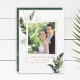 This wedding photo thank you card features watercolor green tropical foliage, palm tree leaves, banana leaves with faux gold leaves accents . Perfect for weddings, anniversaries, birthdays, graduations and other events. >>> Check out the entire collection <<< https://www.zazzle.com/collections/tropical_foliage_gold_collection-119316977990783186