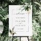 This wedding welcome sign features watercolor green tropical foliage, palm tree leaves, banana leaves with gold leaves accents. It's perfect for a beach or destination wedding.