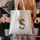 Personalised tropical foliage monogram letter “S” with faux gold accents tote bag. Please click Customise link to change font, size, and colour.