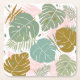 Tropical Foliage - Monstera And Palm Leaf Pattern Square Paper Coaster