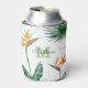Bring a bit of elegant tropical hospitality to your outdoor bbq whenever you relax with your favourite beverage with this chic, modern custom monogram can cooler. Stunning, sophisticated, colourful, tropical watercolor birds of paradise flowers, faux gold glitter, and personalised calligraphy script with a bold monogram initial, overlay a chic, airy white background. Personalise with your name and monogram. Makes a stylish statement every time you use it. Sure to add extra fun to your summer event!