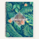 Tropical Foliage Notebook features a design of illustrated tropical leaves in a seamless pattern. These designs include elements of green, blue, red, orange and yellow, tropical leaves, palm fronds, monstera plant and flowers. Products include a template to customise with your name or message. Click on personalise and customise further to change background to any colour.