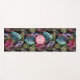 Perfect for yoga at the beach or in a tropical environment, this colourful design features a pattern of tropical foliage that includes palm fronds and monstera leaves in pink, purple, teal, blue and green over a contrasting black background. Personalise with your name and last name monogram for a yoga mat that is uniquely you.