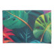 A lush, otherworldly realm with vibrant tropical leaves, painted in delicate watercolors, form an intricate tapestry of rich greens and vivid hues.