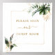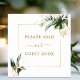 This wedding guestbook sign features watercolor green tropical foliage, monstera, palm tree leaves, banana leaves, and faux gold leaves with a faux gold square frame. It's perfect for a tropical, beach, or destination wedding.