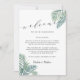 Share a welcome message for your tropical or beachside wedding guests as well as an itinerary or schedule of the weekend's events. Front features your welcome message accented with delicate green palm fronds at the corners. Personalise the reverse side with your wedding day or wedding weekend itinerary. Perfect for including in hotel welcome bags or delivering to your guests' rooms.