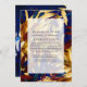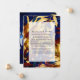Wedding reduced wedding guests announcement featuring a luxurious jungle pattern in hues of blue, burgundy and gold. In these uncertain times, it can happen that you may have to hold a smaller wedding than originally planned. This announcement card will take away the awkwardness and take a load off your mind! You can furthermore provide an option to join you for a virtual ceremony.