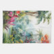 A Watercolour landscape of a tropical forest with colourful flowers
