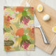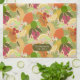 Tropical Fruit Personalised kitchen towel. This is a lovely keepsake gift perfect for commemorating a special occasion. This design features a variety of fruit including papayas, mangoes, bananas and lychee and tropical leaves.
