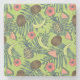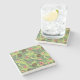 Tropical Fruit Sketch on Green Pattern Stone Coaster