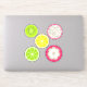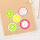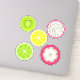 Sticker sheet of assorted tropical fruits - stylised slices of lemon, lime, kiwi and dragonfruit and a half mangosteen