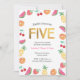 Tropical fruity Pink Gold 5th Birthday Invitation