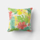Tropical garden, hibiscus plumeria and palm leaves cushion