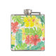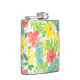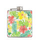 Tropical garden, hibiscus plumeria and palm leaves hip flask