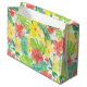 Tropical garden, hibiscus plumeria and palm leaves large gift bag