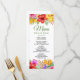 This colourful menu displays a top and bottom border of succulent tropical flowers in warm vibrant shades, all on a crisp white background. You can click the customise link to add your own menu details. You can also change the font style and colour to your liking. This is part of a gorgeous wedding suite that can be fully personalised.