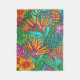 Colourful, Stylised painting collage of vibrant tropical flowers by Lisa Lorenz on a cosy fleece blanket