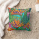 Liven up your space with this colourful pillow of a stylised painting collage of vibrant tropical flowers by Lisa Lorenz
