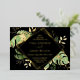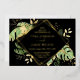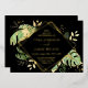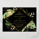 This elegant tropical wedding invitation features green and gold philodendron and fern leaves on a black background. A gold foil geometric frame highlights the foil text. Foil splatters around the outer edges accentuate the exotic botanical design. This sophisticated oasis style invite is perfect for any outdoor, island or destination wedding.