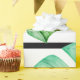 Watercolor jungle leaf gift wrap with a geometric pattern.