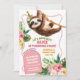 Tropical Girl pink Sloth Birthday Invitation