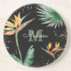 Bring a bit of elegant tropical hospitality into your home whenever you relax with your favourite beverage with this chic, modern custom monogram sandstone coaster. Stunning, sophisticated, colourful, tropical watercolor birds of paradise flowers, faux gold glitter, and personalised calligraphy script with a bold monogram initial, overlay a dramatic black background. Personalise with your name and monogram. Makes a stylish statement every time you use it. A great gift for a friend, as well as yourself!