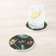 Tropical Gold Black Floral Foliage Monogram Script Coaster