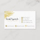 An elegant & summery design of beautiful palm leaves coloured in gold foil. They are arranged on the front and back of the card. This gold, tropical feel business card works well for people in a travel field, such as travel agent, trip advisors or destination event planners. The front features a customisable cursive script font for your name in black, and a place where you can add your job title. The back features social media icons as well as contact icons in a gold foil texture, and by clicking "customise" you can move each icon around individually.